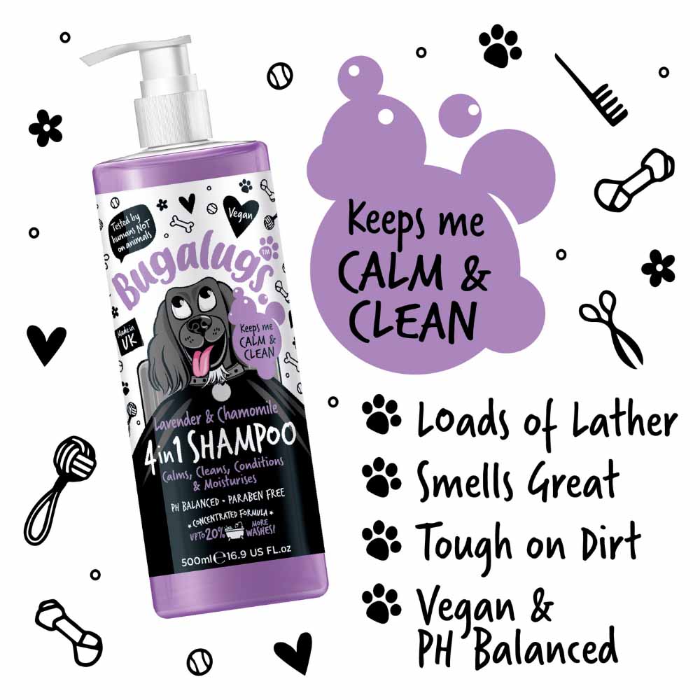 Bugalugs Lavender & Chamomile 4in1 Dog Shampoo 500ml Wilko